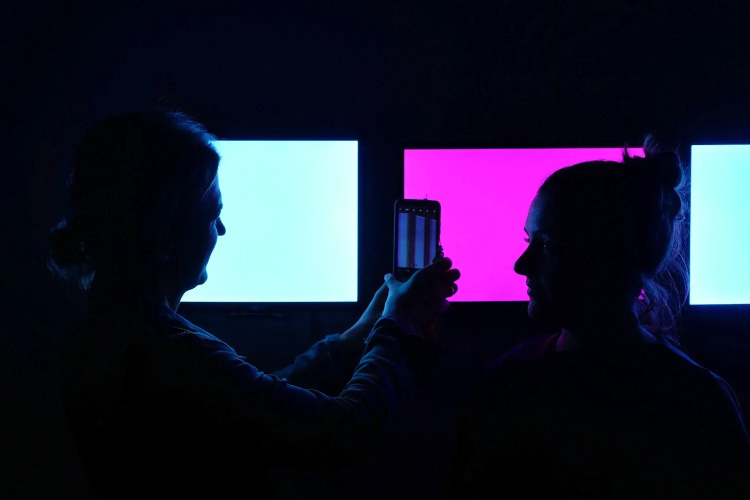 Intitulée Could You Take a Picture?, l’œuvre invite les visiteurs à utiliser leurs caméras pour révéler des compositions visuelles invisibles à l’œil nu. Ce geste fait écho à un basculement culturel plus large : notre dépendance croissante aux dispositifs qui médiatisent la réalité. L’acte de documenter est devenu si omniprésent qu’il remplace souvent l’expérience directe, reconfigurant nos souvenirs et nos liens émotionnels à travers les écrans. En nous demandant de regarder l’œuvre à travers un autre écran pour la percevoir, et en exploitant les limites inhérentes à la fois de la caméra et de notre propre système visuel, la pièce remet en question l’autorité de la perception technologique. Elle nous invite à reconsidérer la manière dont ces systèmes médiatisent l’expérience et façonnent notre compréhension du monde. L’œuvre introduit un glitch poétique, une ambiguïté intentionnelle, dans le flux de l’expérience médiatisée.