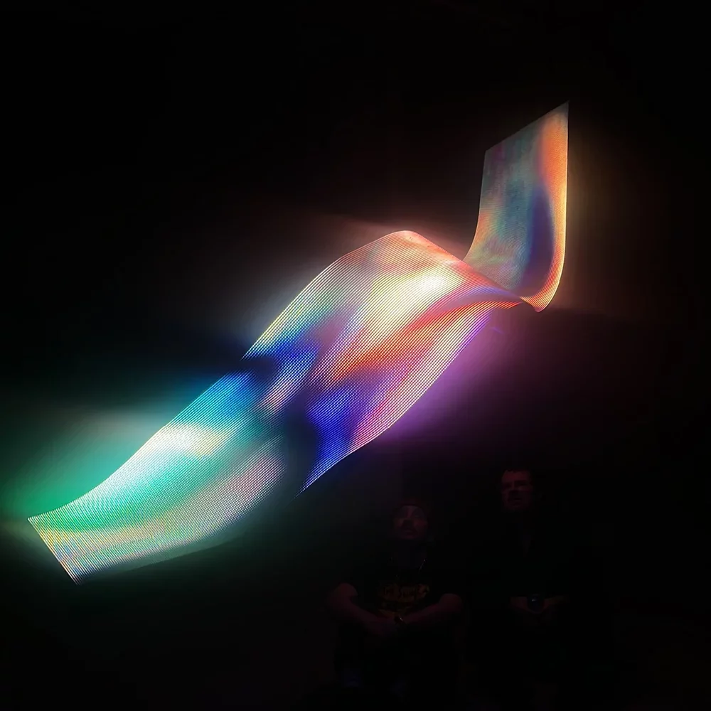La pièce est composée de matériaux visuels provenant d'Idleplus.com (Idle Project, 2021), une plateforme qui a rassemblé des contributions spontanées générées par les utilisateurs, consistant principalement en des photographies floues et de courtes vidéos de personnes. Daemon Saver fusionne ces contributions éphémères en une collection d'images en mouvement, ambiguës et évanescentes, qui deviennent l'"économiseur d'écran" de l'élément sculptural principal : une structure LED construite avec deux points de vue anamorphiques. Grâce à cette double perspective, les images déformées sont reconstruites et rendues lisibles dans l'espace.