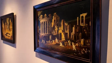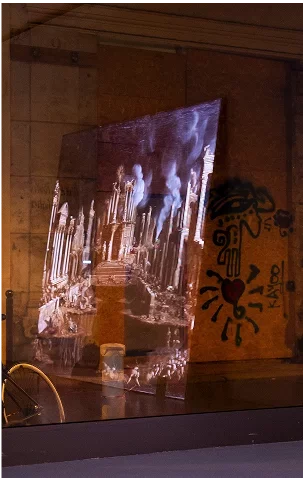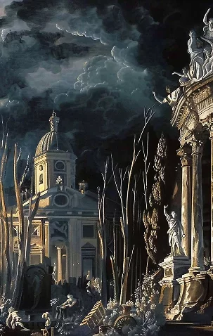 Peintures et vidéos entrent ici en dialogue avec notre époque. Les technologies d’intelligence artificielle, nourries de mémoire et d’images, semblent étrangement proches de Monsù Desiderio : elles puisent dans l’inconscient collectif, recomposent des architectures impossibles et inventent de nouvelles ruines aux perspectives brisées.